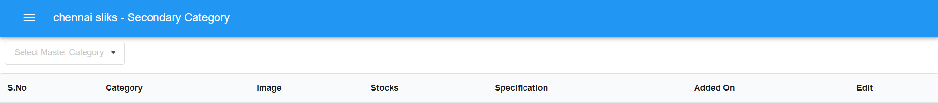 Refer to the image above to view and manage secondary categories. If any secondary categories have already been added, they will be listed on the page after choosing the corresponding master category. You can select a master category from the dropdown and add its related secondary category accordingly.