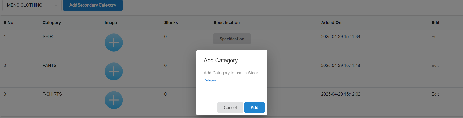 You can see a popup like this, to add a secondary category. First, select a master category from the dropdown. Then, click the “Add Secondary Category” button at the top left. Enter the name of the secondary category in the input box and click on the Add button. The new secondary category will be added under the selected master category for your ecommerce website.