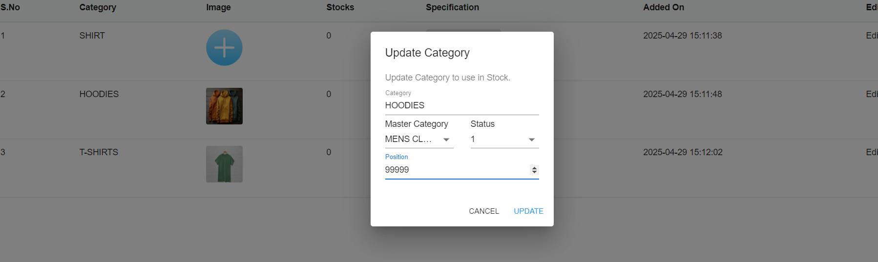 If you click on the edit button on the right side of the category, it will show the popup to edit the category, master category, status and position of the secondary category.